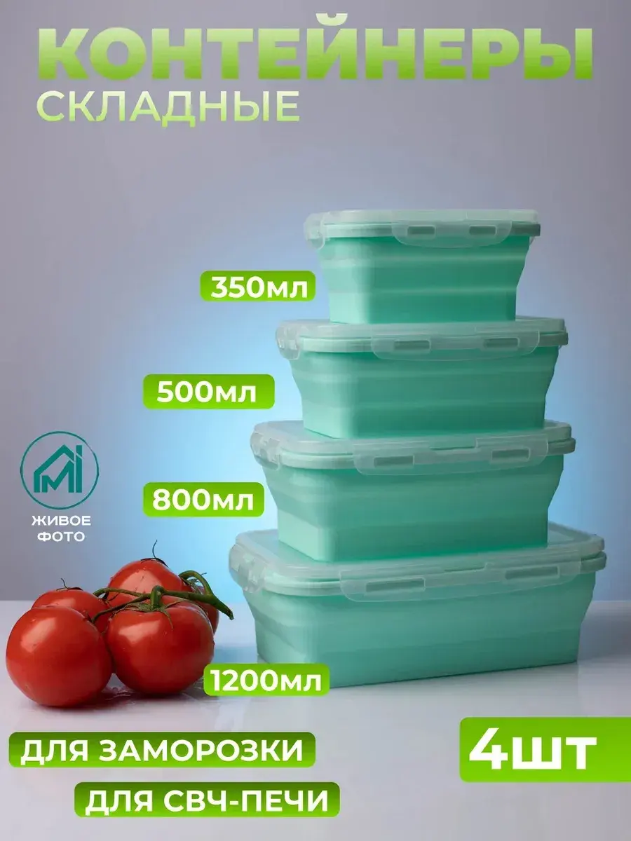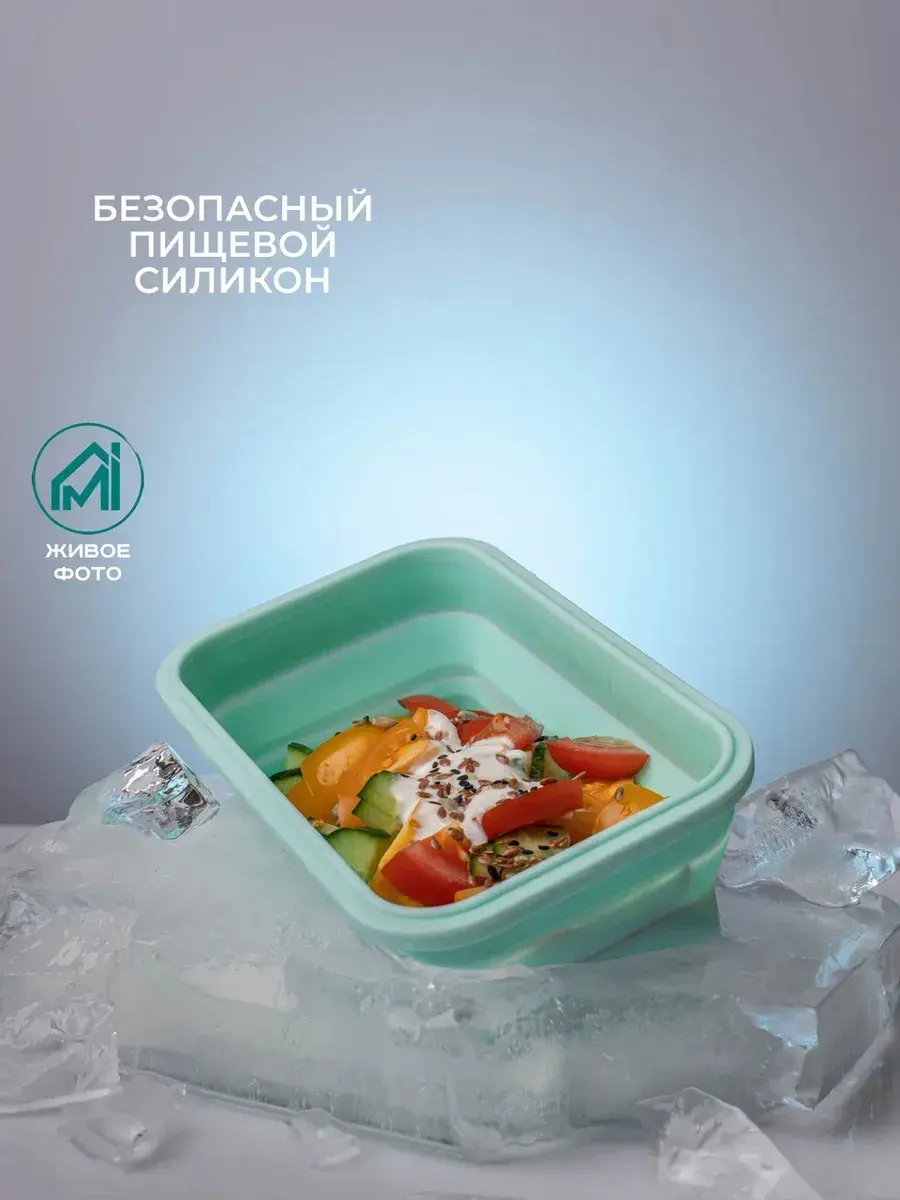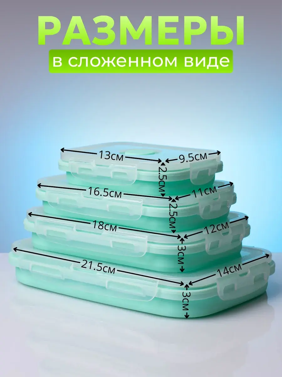 Пищевые емкости можно использовать в микроволновке и мыть в посудомоечных машинах. Складная посуда для заморозки и для организации пространства и порядка на кухне, не позволяет смешиваться запахам в холодильнике.