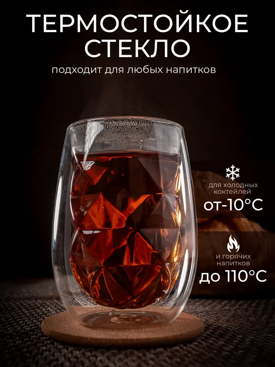 Благодаря изящному дизайну и прозрачному стеклу, этот аксессуар гармонично впишется в любую обстановку. Двойные стенки и дно обеспечивают прочность, долговечность и отличную термоизоляцию: напитки дольше сохраняют нужную температуру, а сама кружка не впитывает посторонние запахи. Особый пузырёк на дне добавляет оригинальности и помогает дольше удерживать тепло.