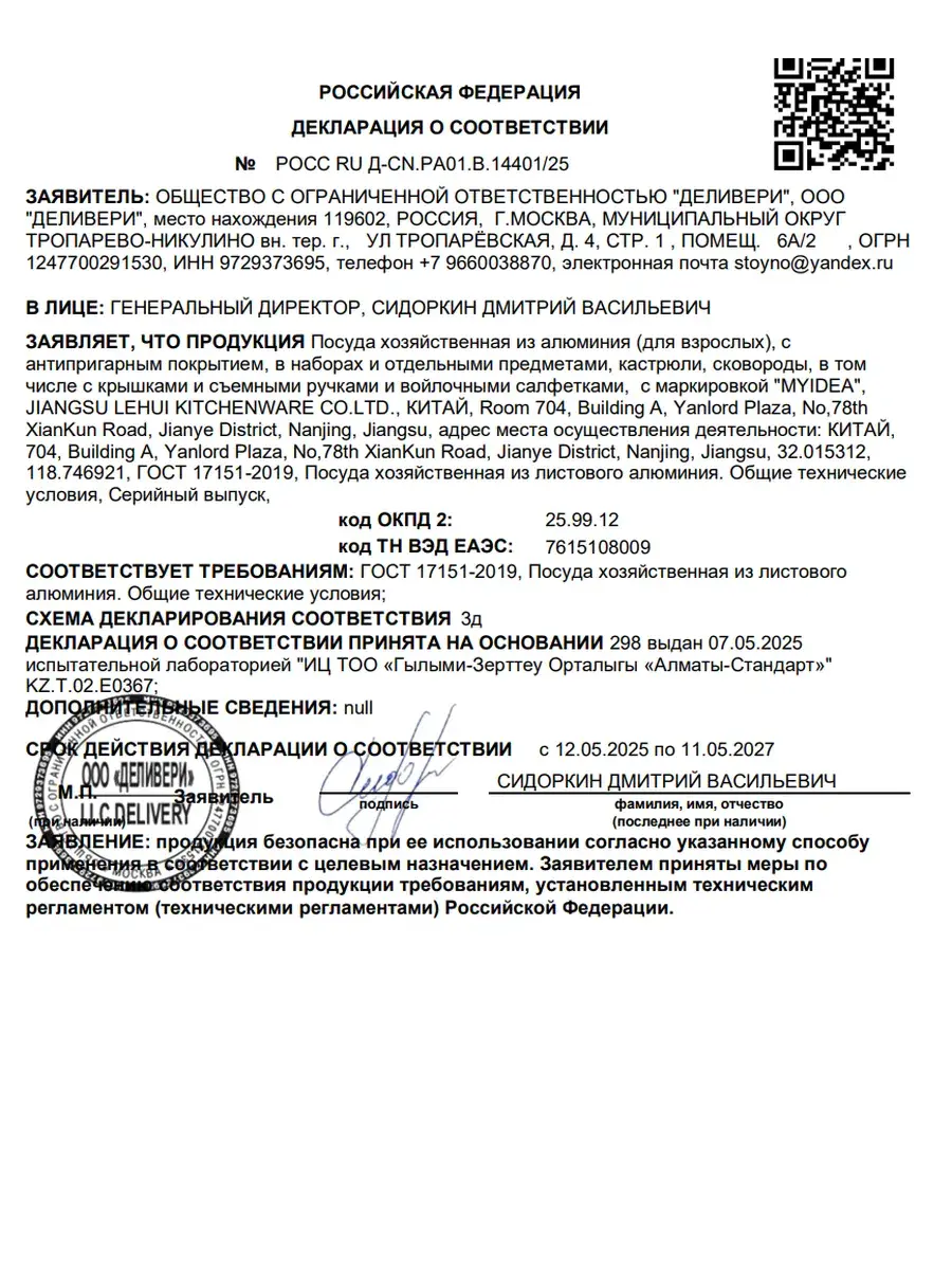 Рекомендации по уходу: Для долговечности используйте деревянные или силиконовые лопатки. Мойте вручную мягкой губкой для сохранения блеска покрытия. Не рекомендуется мыть в посудомоечной машине.