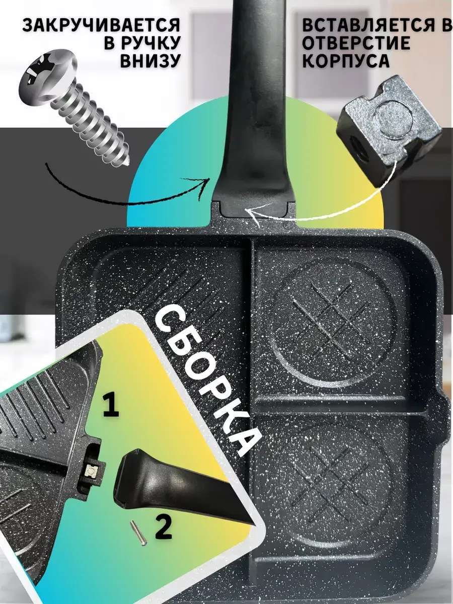 Секционная сковорода идеально подходит для приготовления оладий, яичницы и других завтраков. Благодаря секционной конструкции и отсекам, вы можете одновременно готовить несколько видов блюд, экономя время и усилия. Посуда для приготовления с отсеками станет незаменимым помощником для приготовления восхитительных шедевров!